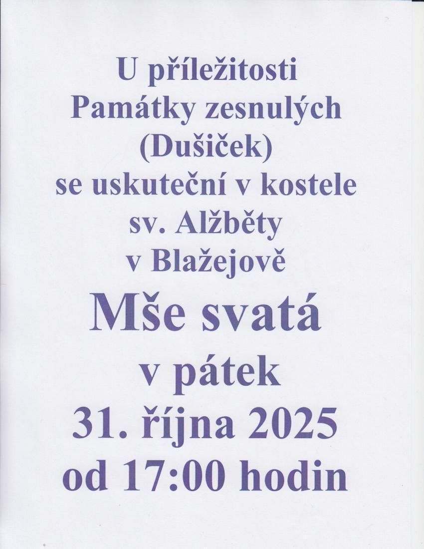 Mše svatá u příležitosti Památky zesnulých Dušiček