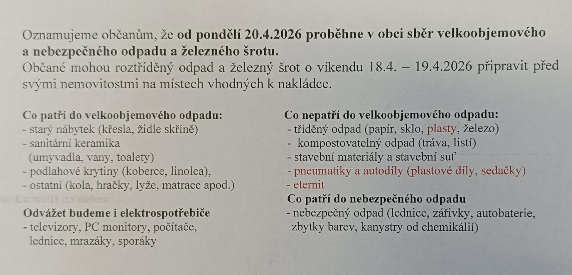 Svoz velkoobjemového odpadu